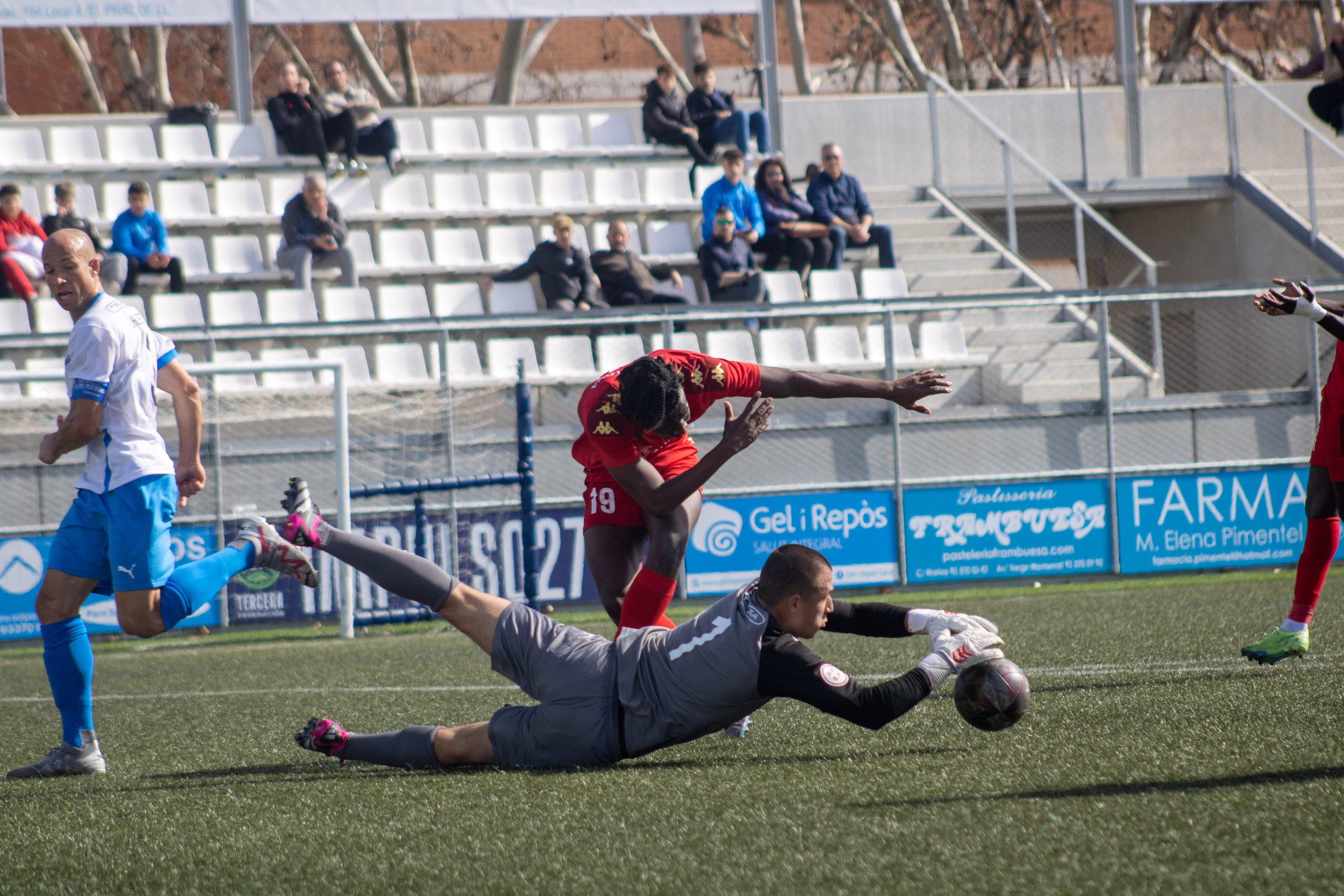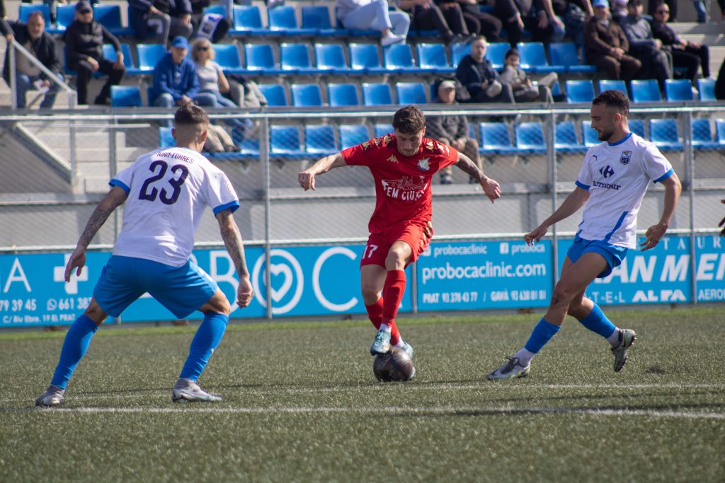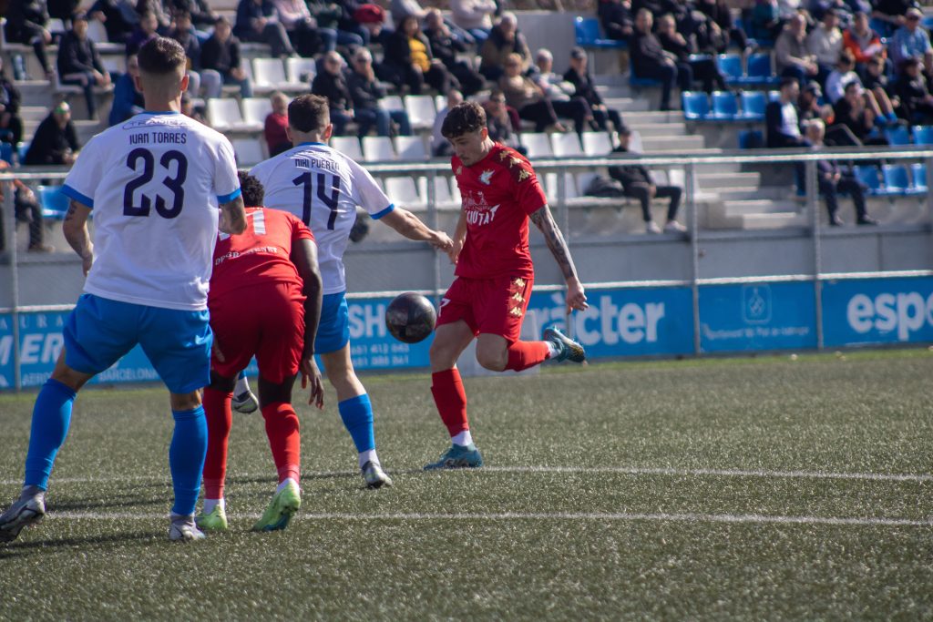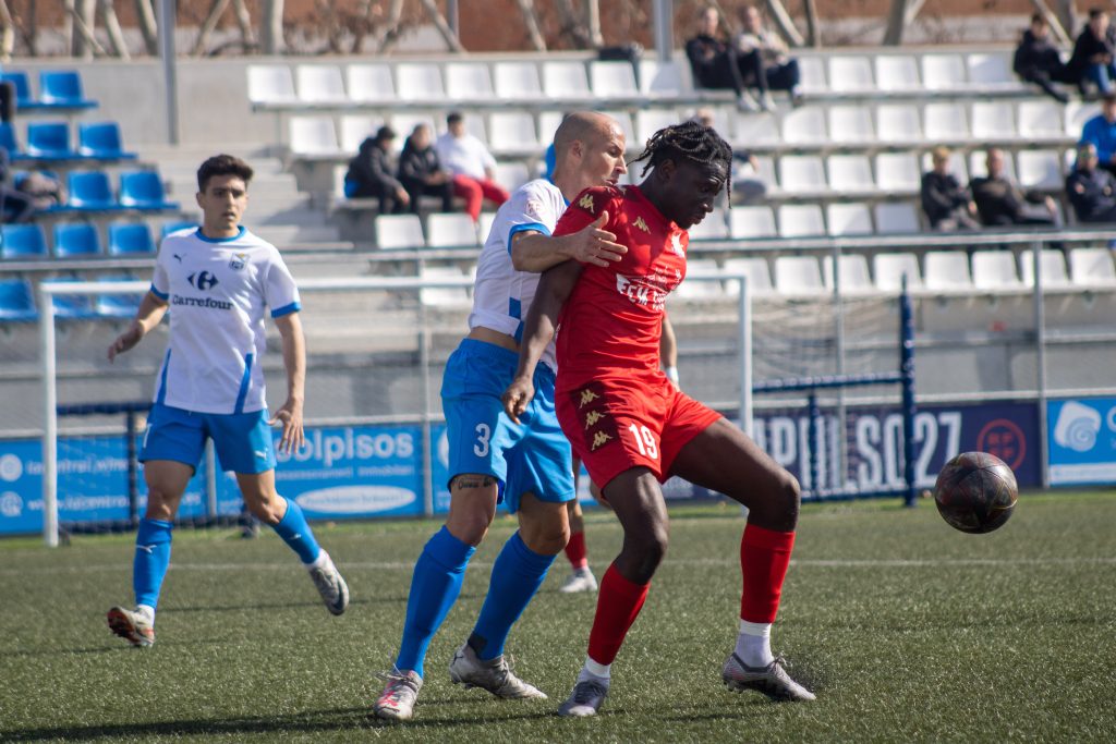 Pese a no disfrutar de las mejores ocasiones, el equipo logró adelantarse en el marcador. En el 28′, jugada de estrategia con centro de Padilla y Oumar, elevándose por encima del defensa y cabeceando al fondo de la red, hizo el primero. La alegría duró poco porque 8 minutos más tarde y después de poder hacer el 0-2, Lamelas igualaría el duelo. Las últimas ocasiones del primer tiempo llevarían el sello de los del Baix Llobregat.