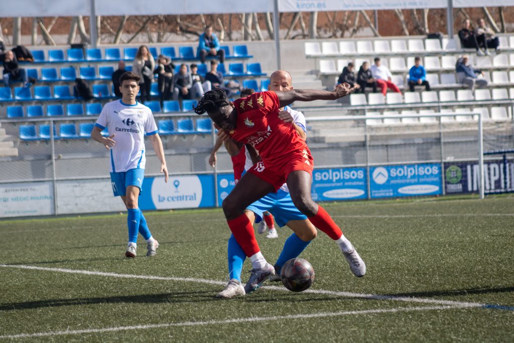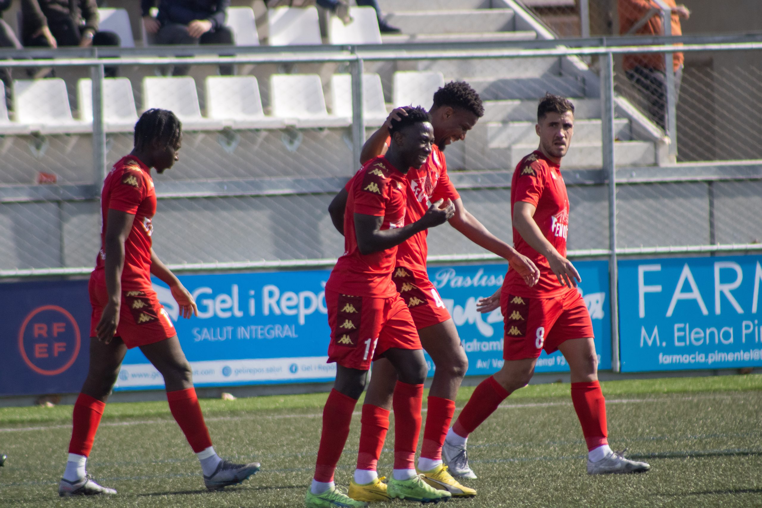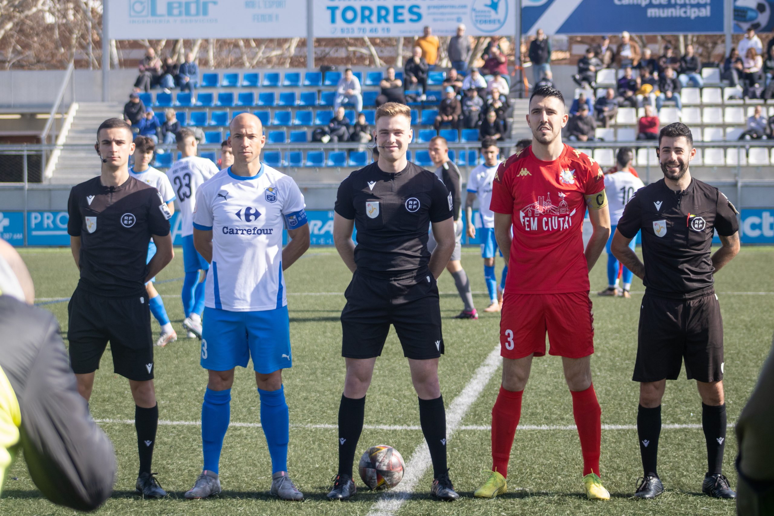 Pese a no disfrutar de las mejores ocasiones, el equipo logró adelantarse en el marcador. En el 28′, jugada de estrategia con centro de Padilla y Oumar, elevándose por encima del defensa y cabeceando al fondo de la red, hizo el primero. La alegría duró poco porque 8 minutos más tarde y después de poder hacer el 0-2, Lamelas igualaría el duelo. Las últimas ocasiones del primer tiempo llevarían el sello de los del Baix Llobregat.