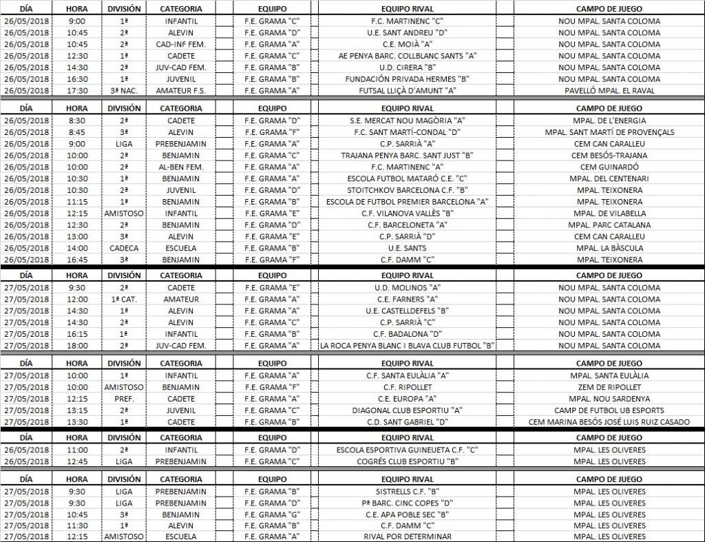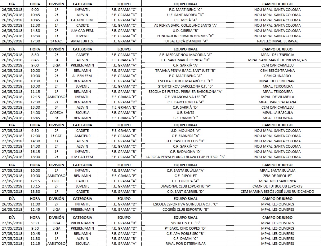Agenda de partits dels nostres equips (26 i 27 de maig)