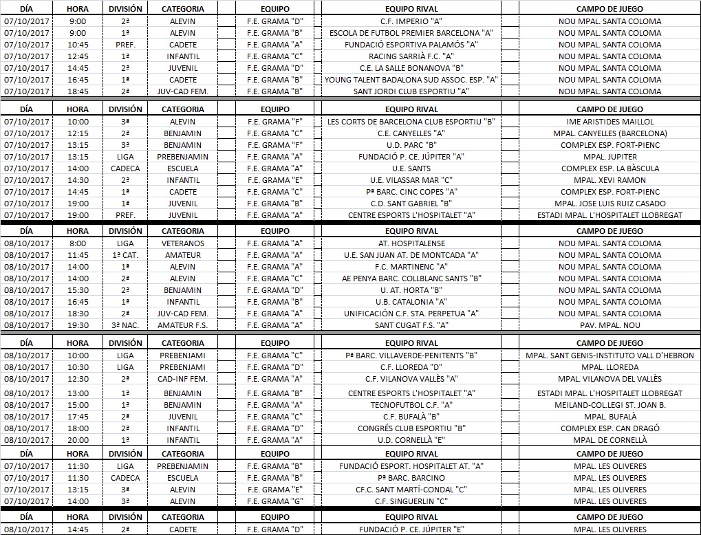 Agenda de partits dels nostres equips (7 i 8 d’octubre)