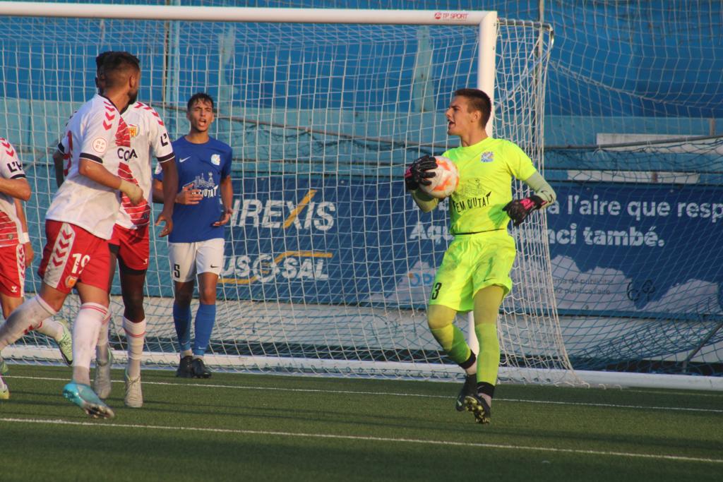 Dos minutos más tarde de nuevo Montalbán, esta vez de espaldas a portería probaba de cabeza. En el 55′ de nuevo el técnico colomense se veía obligado a realizar un cambio por lesión, debutando Marc Rodríguez por el lesionado Escarrabill.