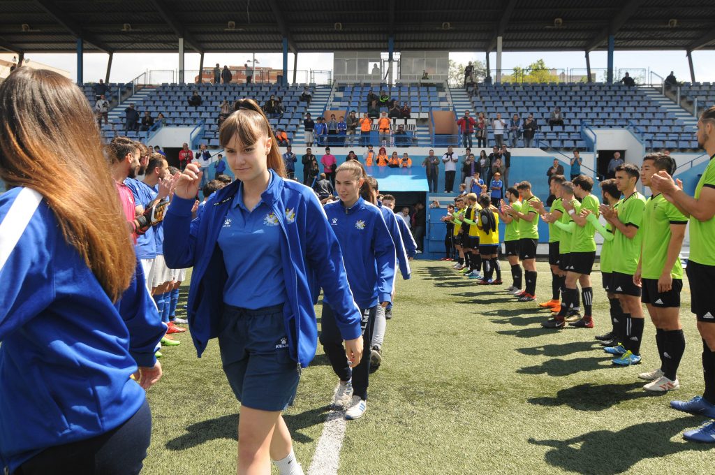 El primer equipo de la Grama ha hecho el pasillo de honor al Juvenil A femenino, al equipo inclusivo adulto, al Infantil A, al Infantil B femenino y al Juvenil A. Todos juntos se han hecho la foto de rigor en un merecido homenaje.