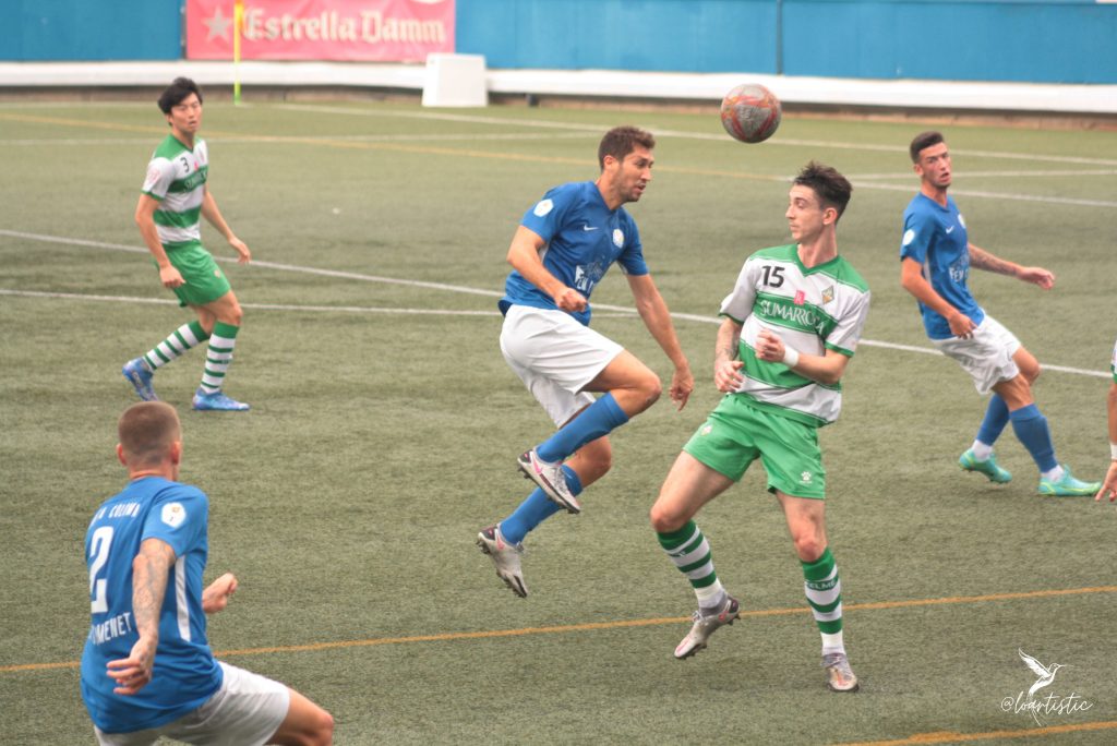 Van començar bé els franjiverds que amb diverses carreres van intentar arribar sense perill per a una defensa molt ben col·locada, amb Adrien, Akrong i Alan molt segurs. Amb el pas dels minuts els colomencs es van anar fent els dominadors, sense deixar trepitjar àrea al rival.