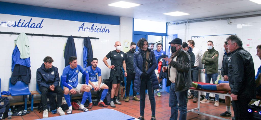 L’alcaldessa Núria Parlón felicita al primer equip per la victòria.