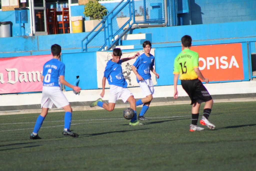 Es en este preciso momento, tras un balón largo y un error individual, donde el rival marca el gol. Pero los azules reaccionaron bien: dominando el juego y marcando antes del descanso el 1-1, siendo este un jarro de agua fría para Can Buxeres.