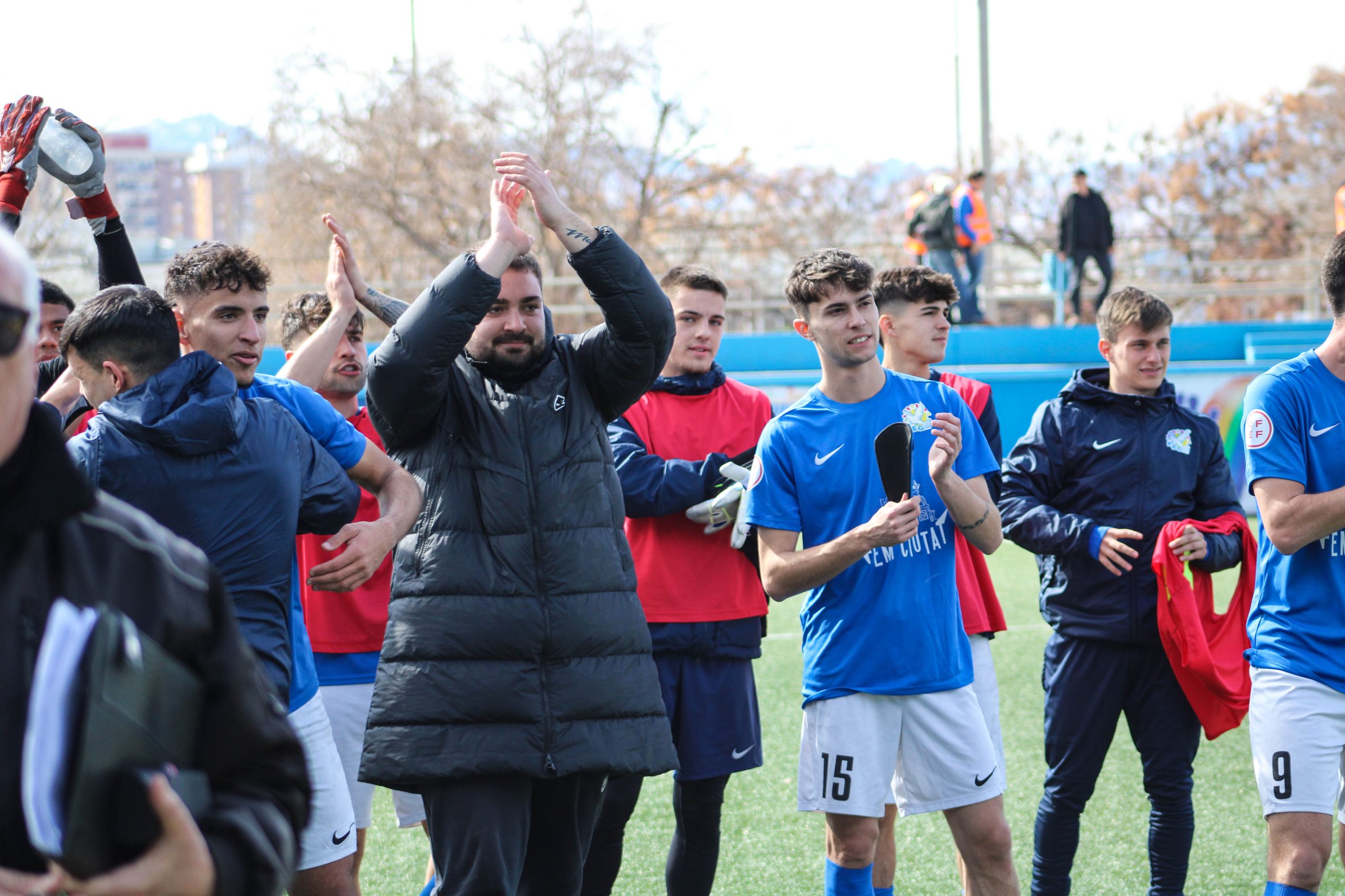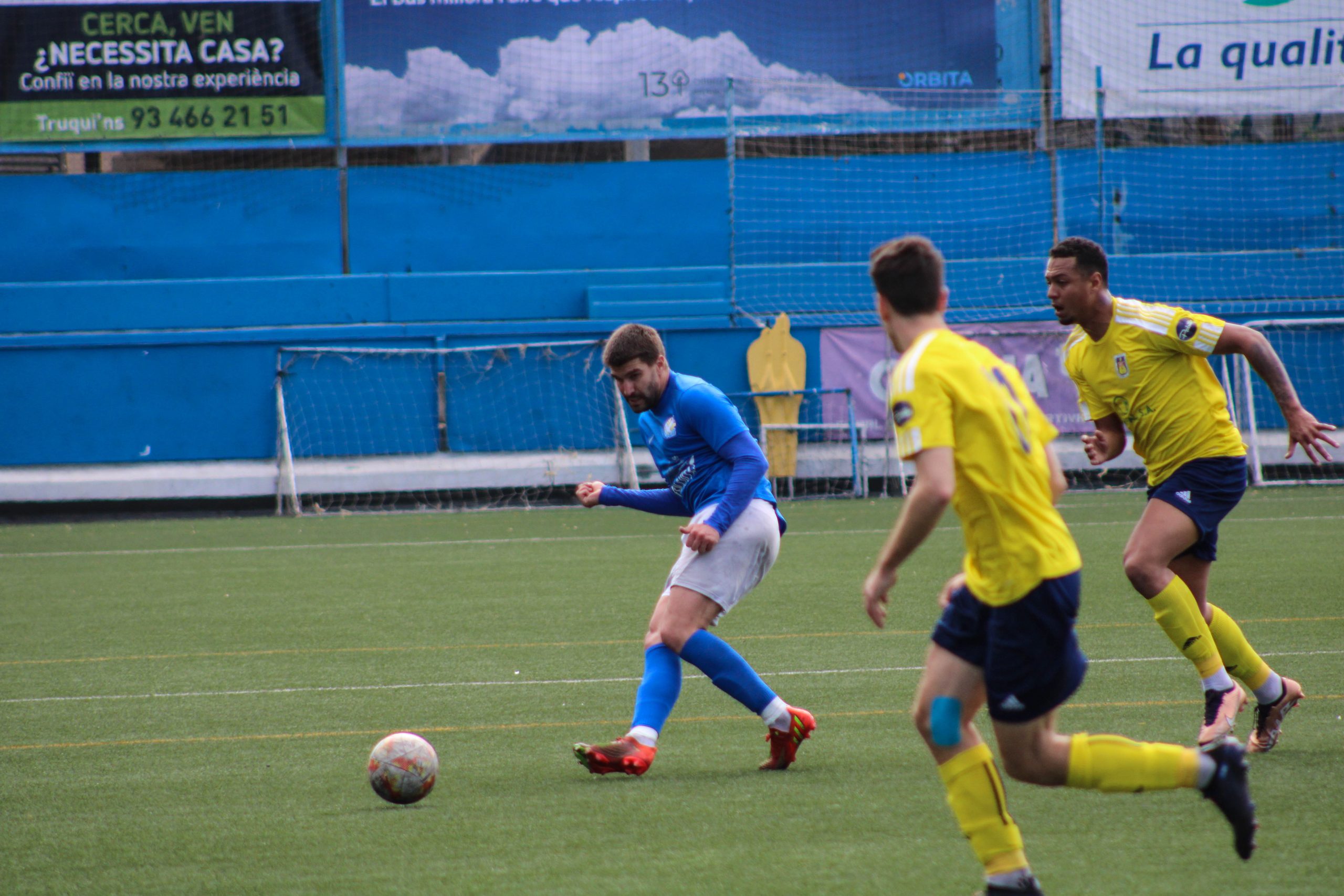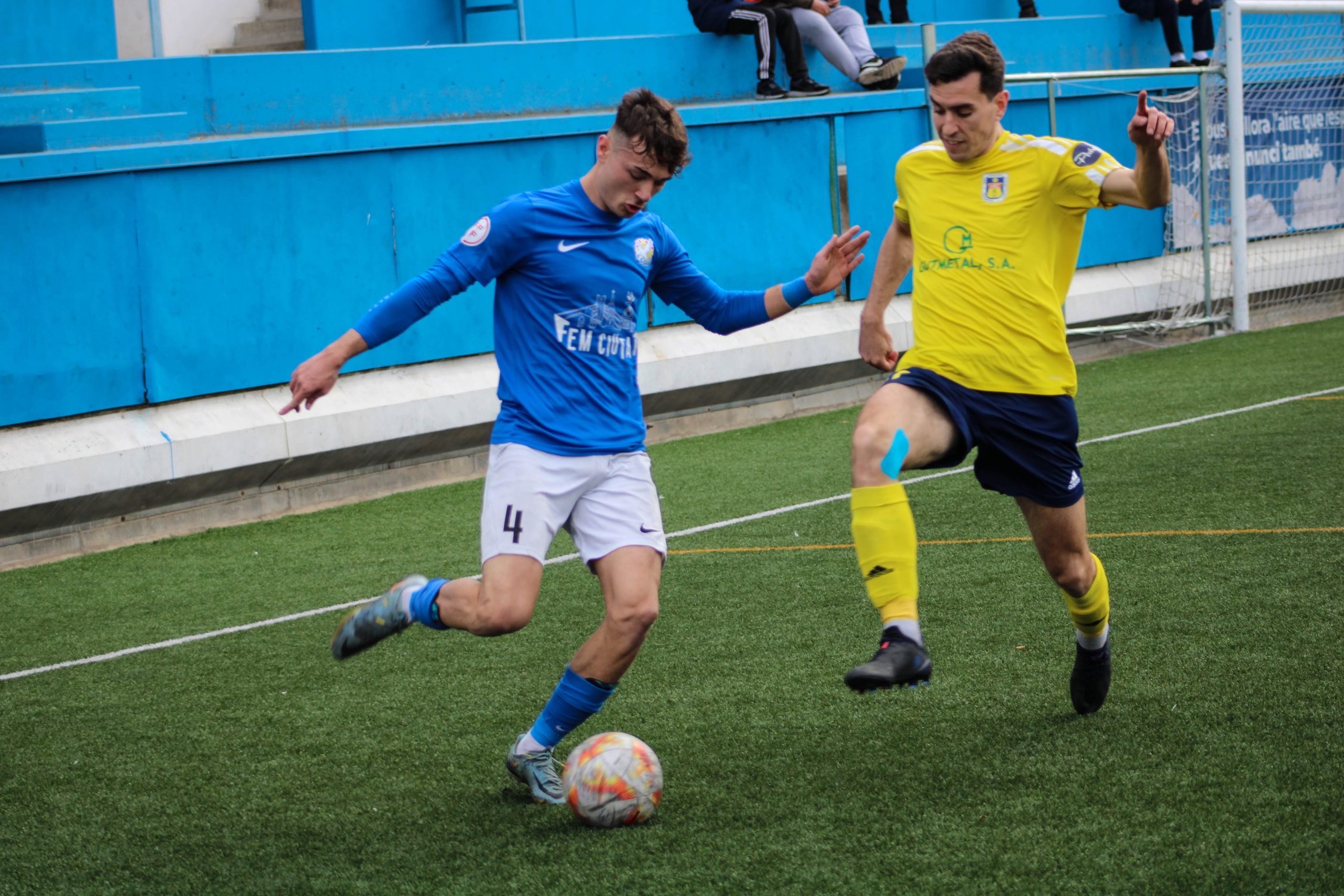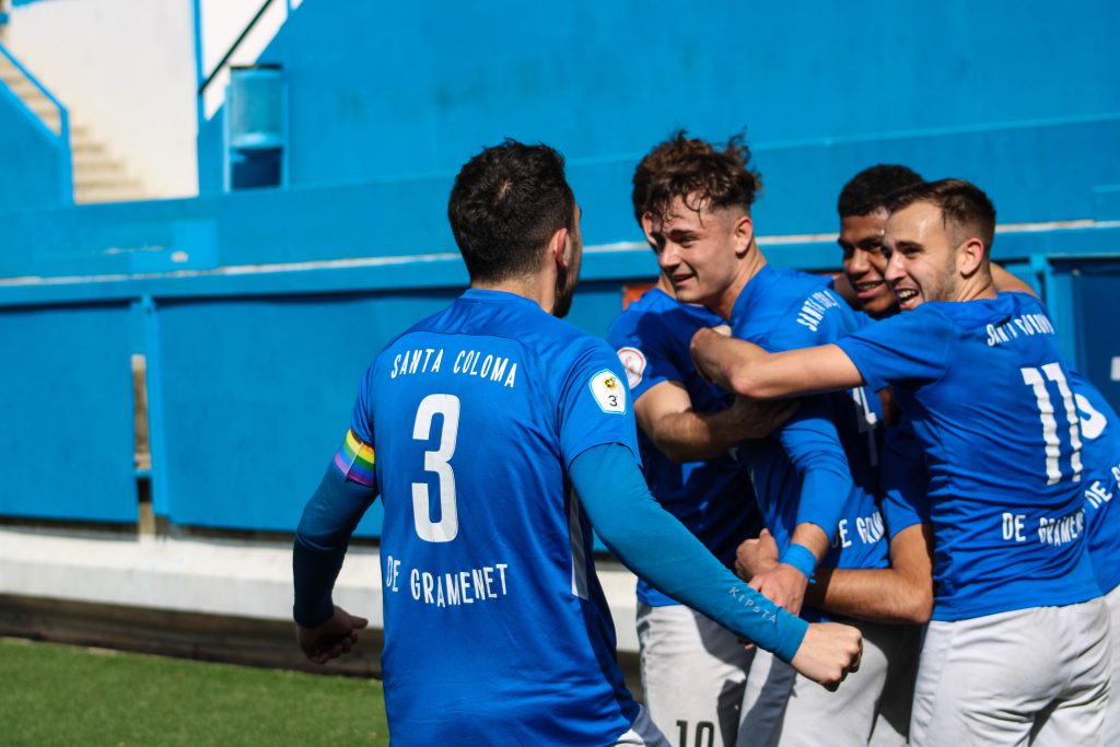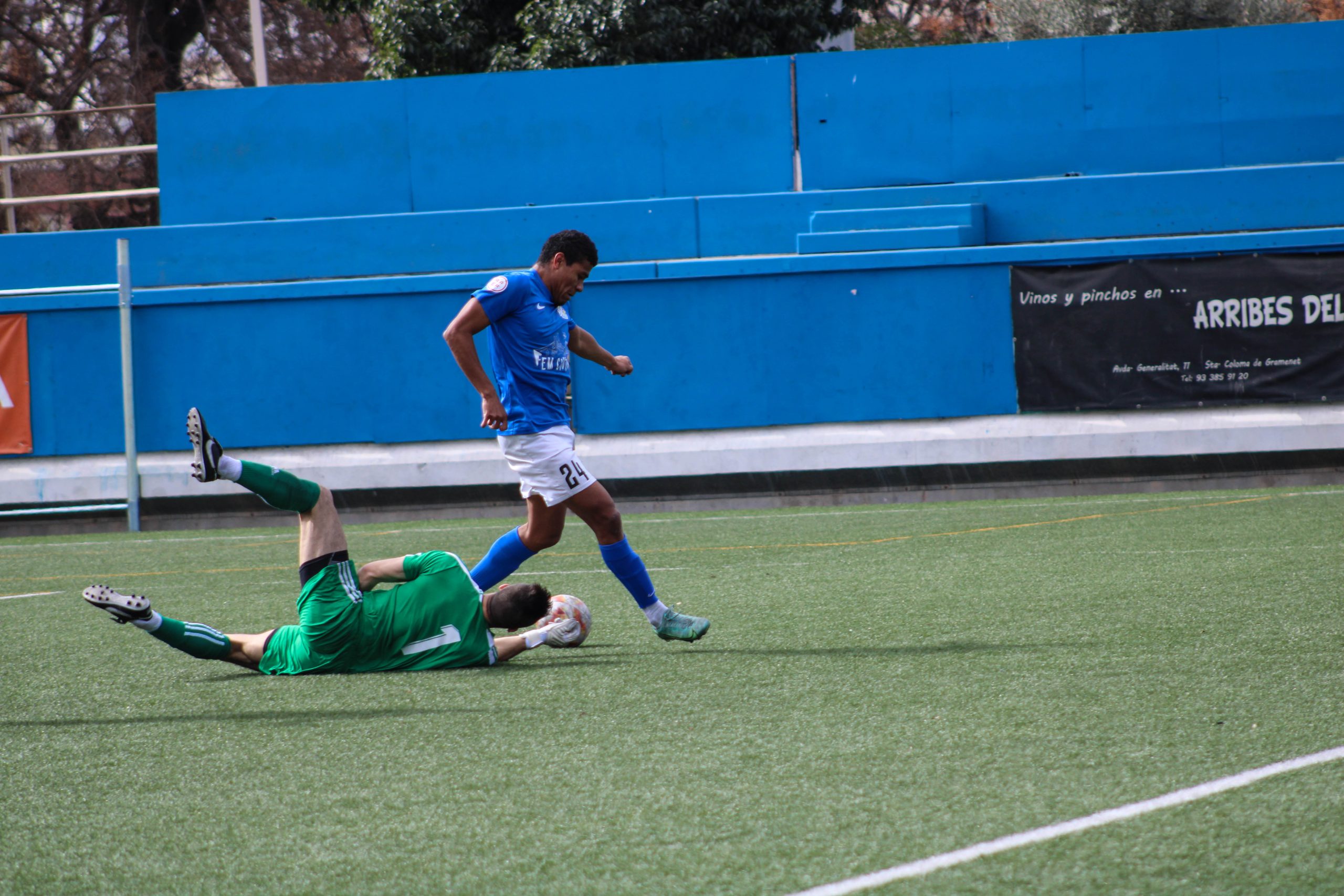 En la reanudación, los de Jose Solivelles metieron una marcha más en el partido y dieron un paso adelante, dominando más el duelo con el balón e intentando generar ocasiones en espacios que apenas existían. Trilla, Guillem Pujol y Escarrabill gozaron de disparos con peligro, pero ninguno de los tres encontró la portería rival. Unos minutos después, en el 65′, Acedo probó un disparo con tuerca que detuvo el meta del Castelldefels… Y al saque de esquina, Trilla se elevó por encima de todos para hacer el gol de la victoria colomense, haciendo así su séptimo gol de la temporada. «Aerolíneas Trilla» es mucho más que un apodo.