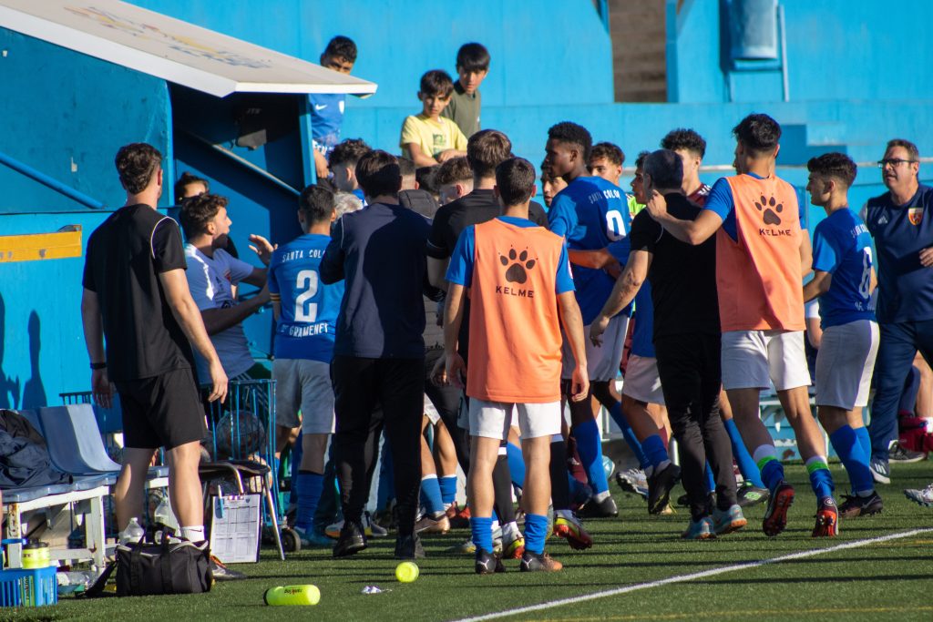 No era un partit fàcil, principalment pel nivell del rival, però l’equip de Jordi Palasi va saber plantejar-lo des del primer moment. Això serviria per neutralitzar els balears, que van veure com la Grama els tapava i impedia que les accions progresessin. La pressió colomenca, realitzada des de l’inici, va donar els seus fruits en forma d’ocasions, però la pilota no va entrar en les primeres aproximacions, protagonitzades per tirs llunyans com el de Serrano al 7′.