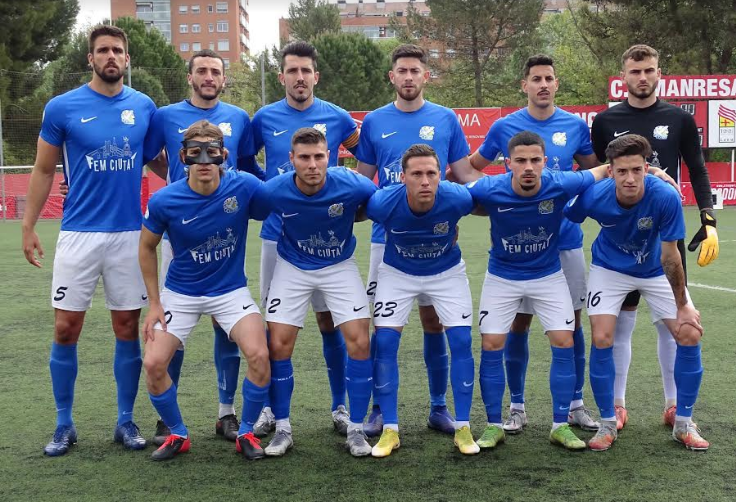 Poques vegades van poder els colomencs atacar, alguna combinació en velocitat i un intent llunyà d’Omar. Però novament el Manresa va atacar amb forces. Dani Guiseris amb l’ajuda del travesser va evitar un gol de cap de Moha i en el rebutgi la pilota es va anar per damunt.