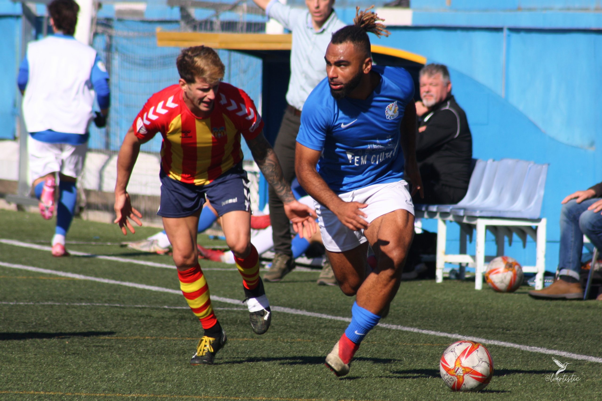 Robatori de pilota a la frontal de Roger García que després d’entrar a l’àrea va deixar en safata el gol a un Molins que de nou no fallaria. El 0-3 al 28′. Abans del descans Solsona de cap va tenir el quart, els blaus van manejar molt bé la pilota i s’acostaven amb perill.
