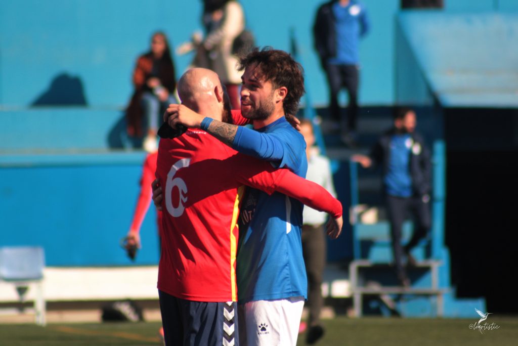 Als 9 minuts la bona pressió colomenca va entrar en escena, Molins va robar la pilota i la va entregar a Peris que des de fora de l’àrea va provar sort i va topar amb una gran parada de Casamayor. Els blaus van estar perfectes en tot, movent bé la pilota, rapidesa i en defensa ningú no podia amb un imperial Adrien. Al 25 Montalbán de cap desprès d’un centre de Peris feia lluir-se Casamayor amb una mà avall, hauria estat un golàs.