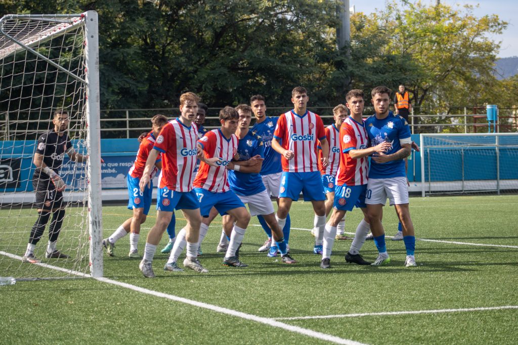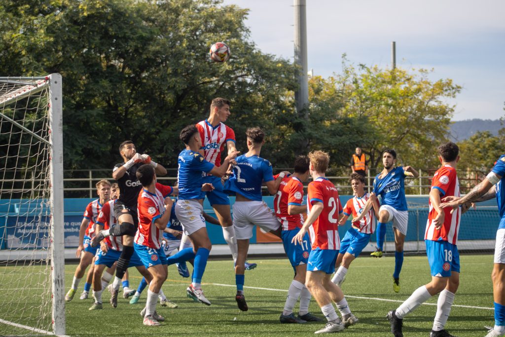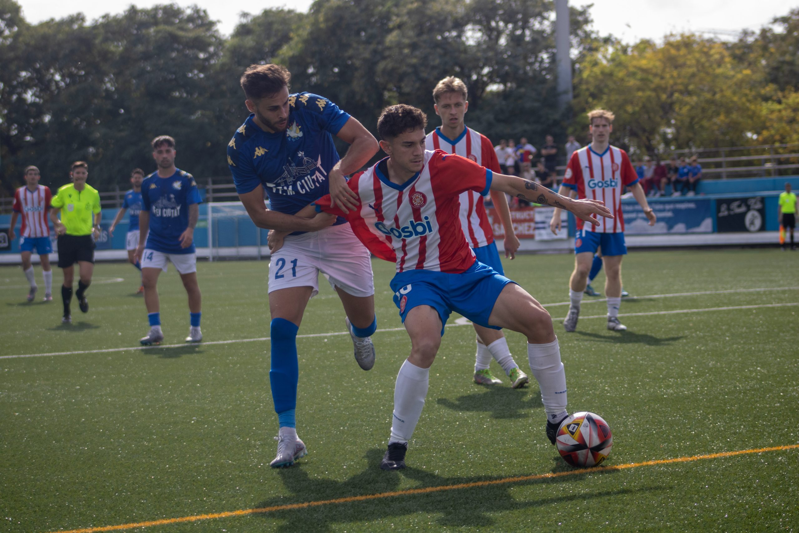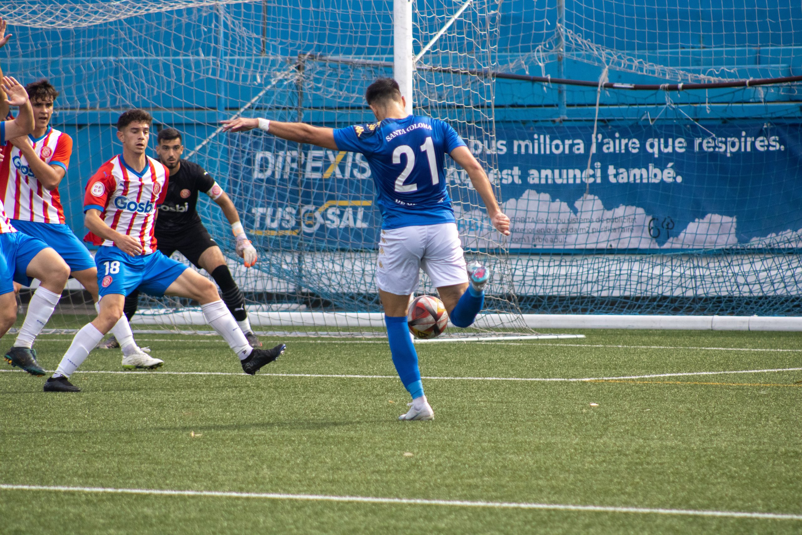 El inicio del duelo estuvo marcado por el dominio colomense, que fue constante hacia la portería de los gerundenses. Los de Jose Solivelles tenían claro que era clave empezar bien y por eso saltaron al césped del Municipal de la Grama con intención de anotar el primer gol. De hecho, los ataques colomenses eran constantes y el Girona sólo se acercaba a la portería de Sergio con contragolpes. Se llegaría al descanso con el 0-0 inicial.