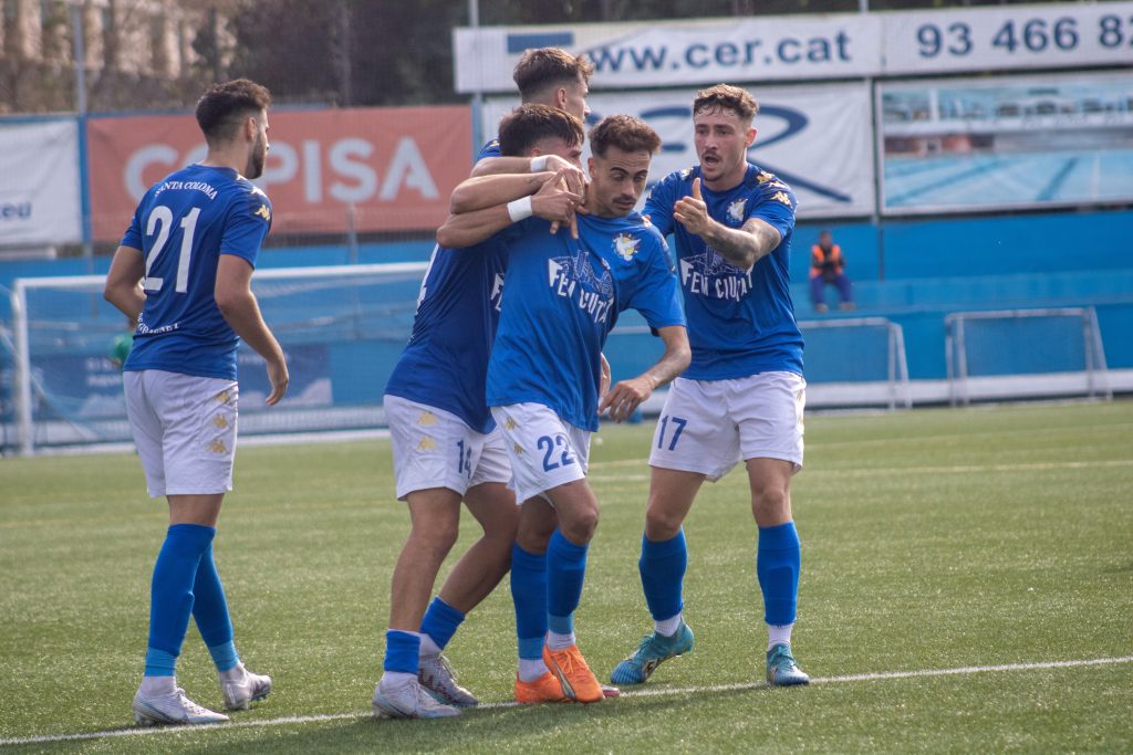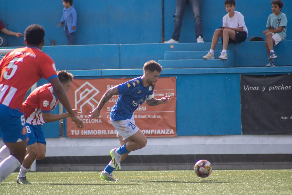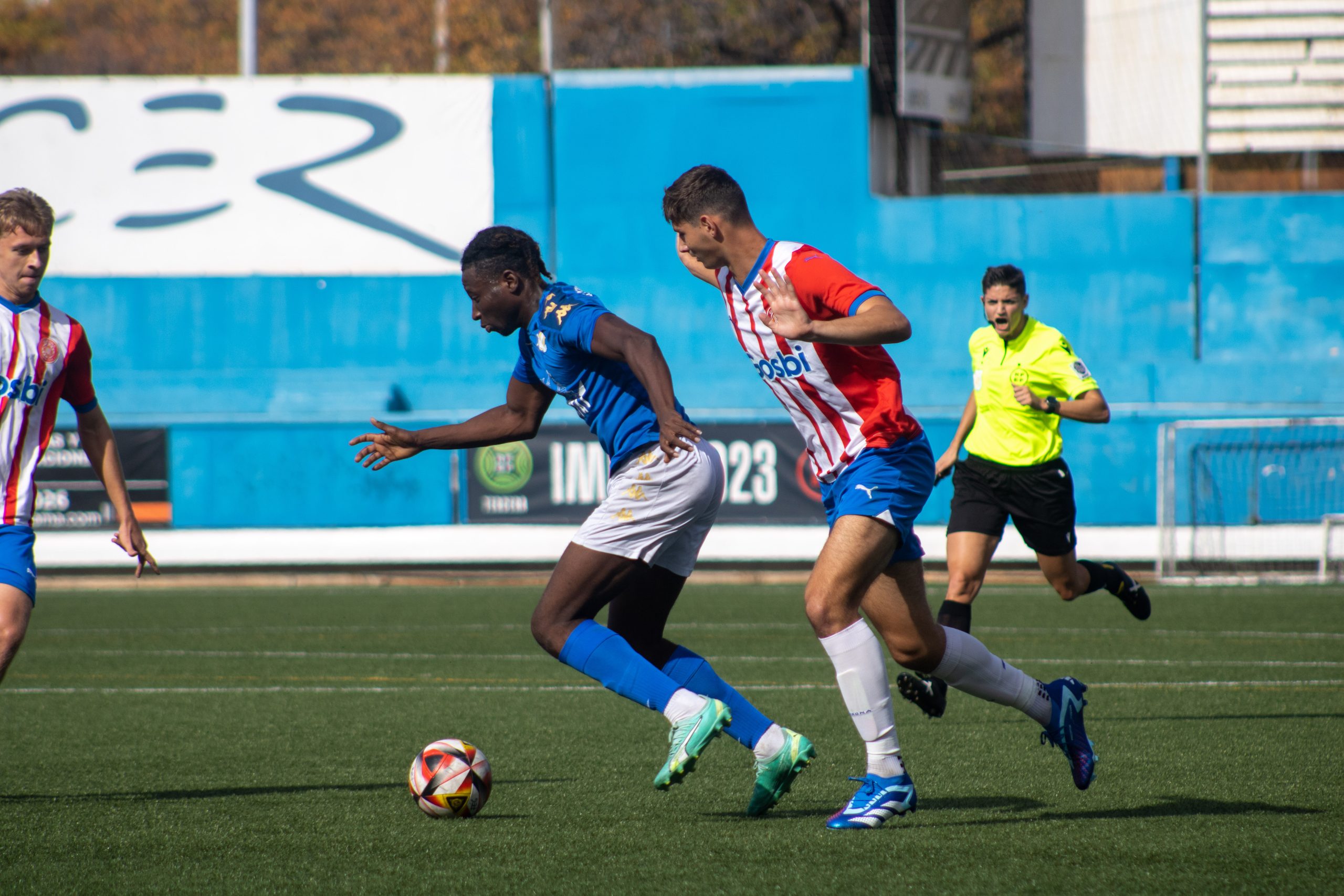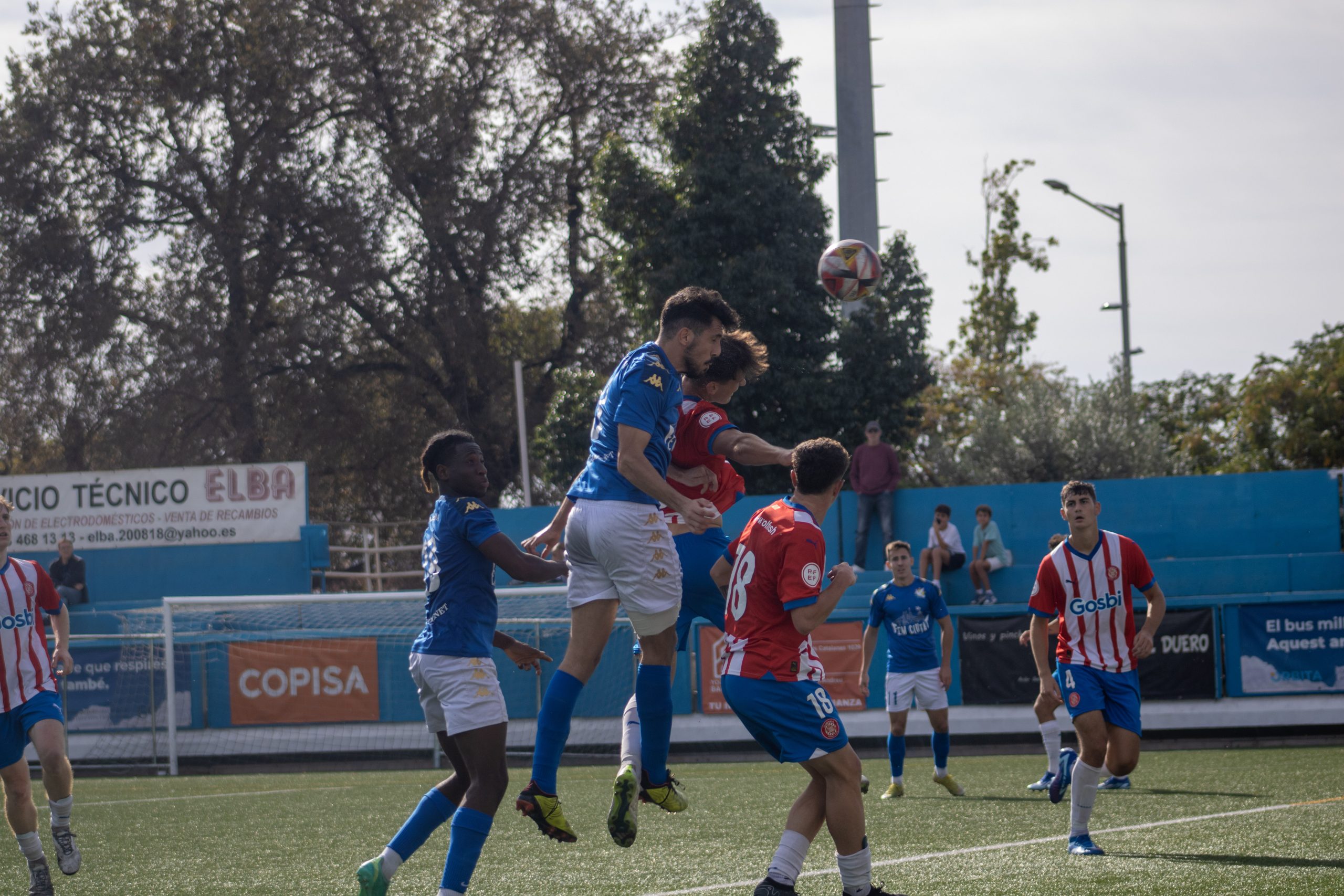 L’inici del duel va estar marcat pel domini colomenc, que va ser constant cap a la porteria dels gironins. Els de Jose Solivelles tenien clar que era clau començar bé i és per això que van saltar a la gespa del Municipal de la Grama amb intenció d’anotar el primer gol. De fet, els atacs colomencs eren constants i el Girona només s’acostava a la porteria de Sergio amb contraatacs. S’arribaria al descans amb el 0-0 inicial.