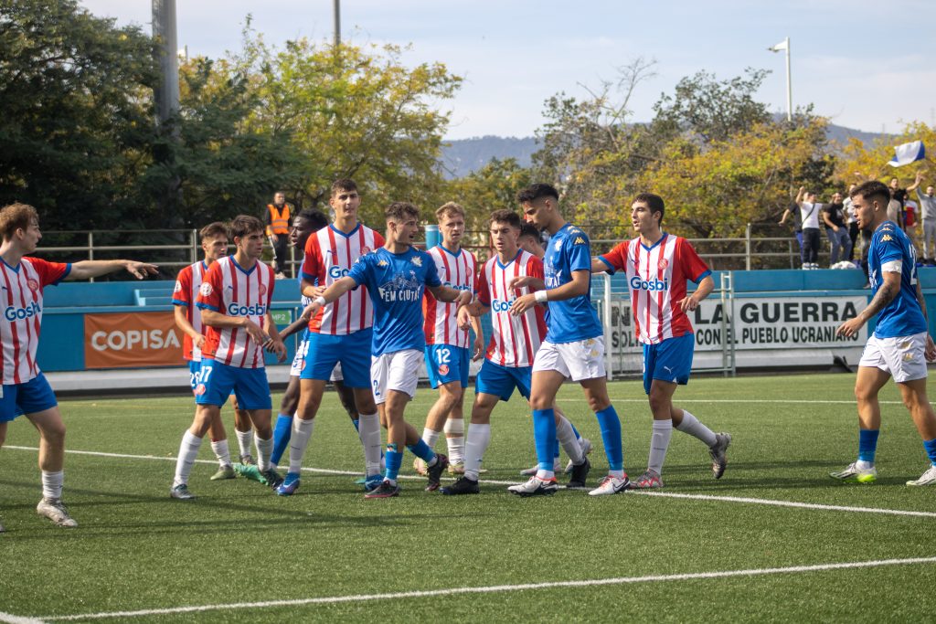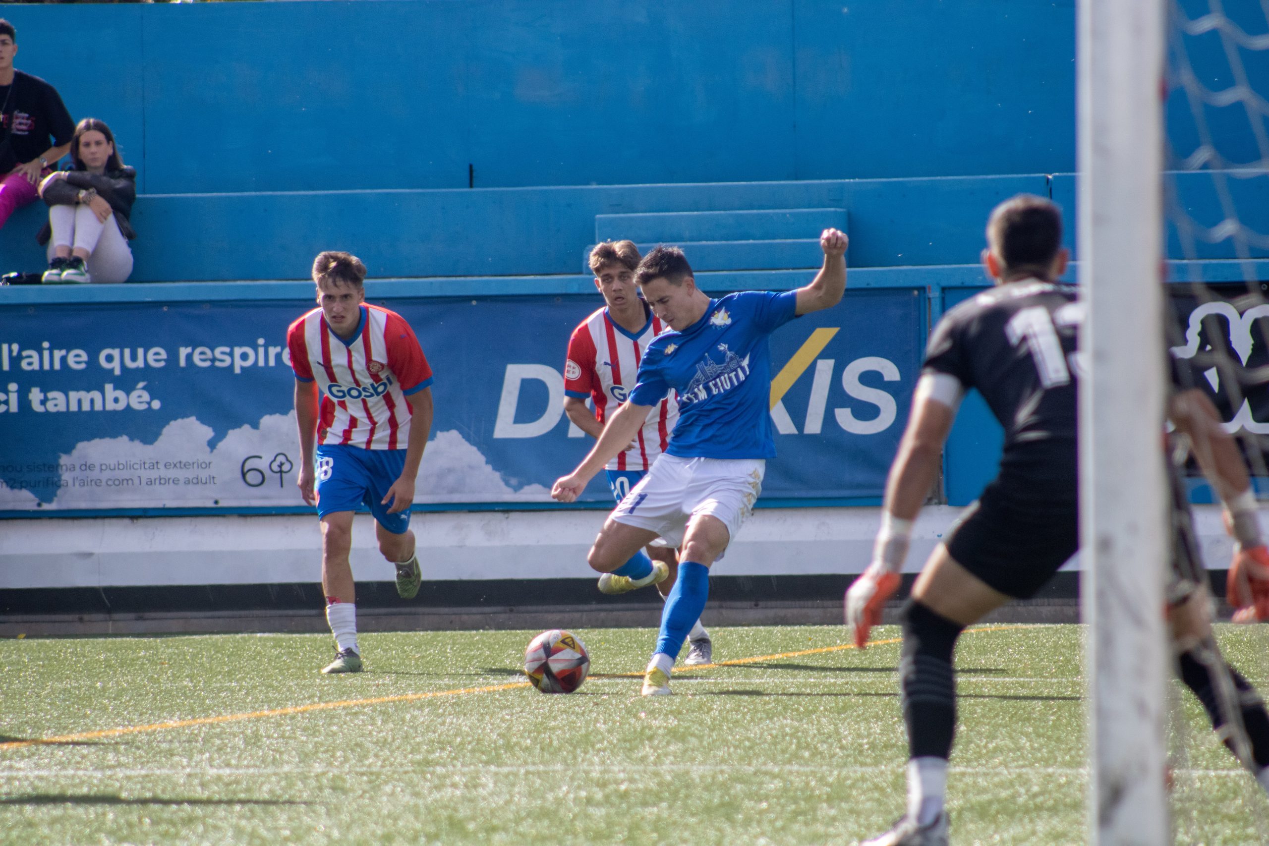A la represa, la Grama seguiria dominant, però qui faria el primer gol seria gironí. Gràcies a una acció de contracop, els visitants s’avançarien a l’electrònic. Tot i això, els colomencs no abaixarien els braços i només 8 minuts més tard, Padillo aconseguiria anotar l’empat amb un bon xut des de la frontal. A partir d’aquí, als darrers 30 minuts de joc, el partit seria un monòleg blau que no s’acabaria de concretar amb xuts a porta. La més clara la va tindre Juan Carlos als darrers minuts però Juanvi va treure una gran mà per salvar un punt pels visitants. Finalment i tot i els diversos intents de la Grama, el resultat seria d’empat a 1.
